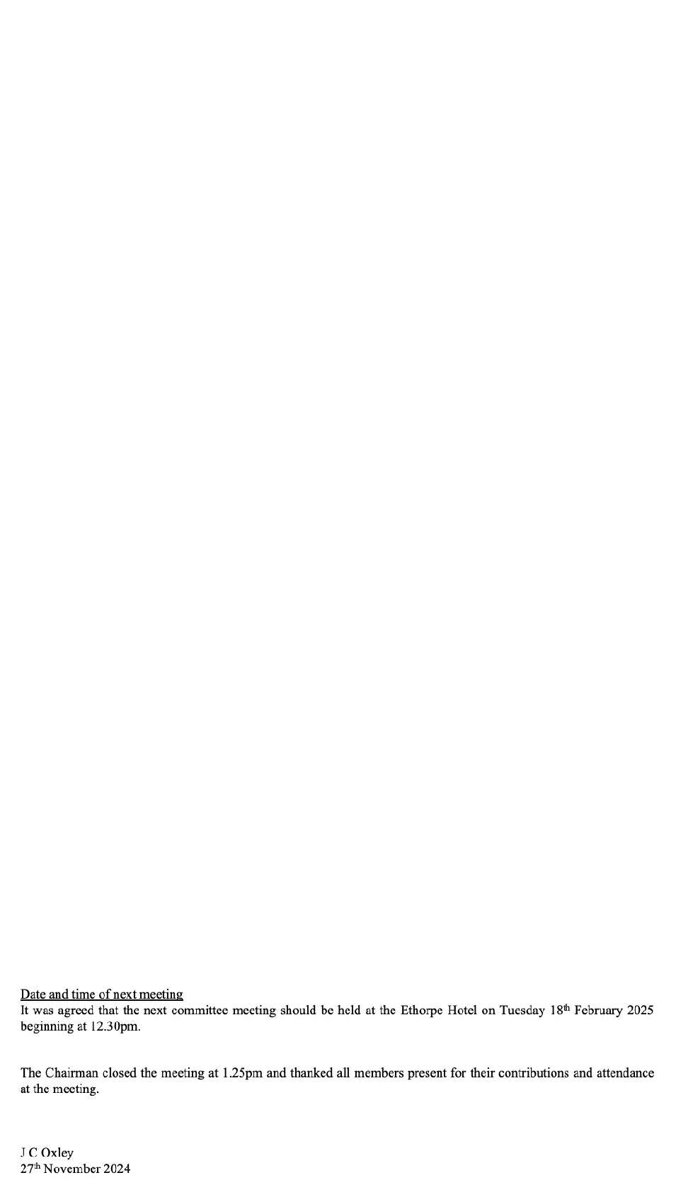 MINUTES OF LAST