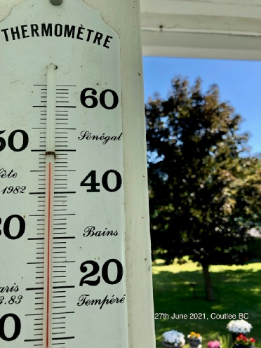 I have attached photographic evidence of the heat (47Celsius or 116Fahrenheit) on our back porch in the shade.