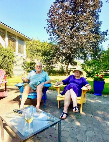 And here are Helen and myself enjoying a glass of local wine in the evening, after the ‘dome’ had left and it had cooled to a blissful 28C degrees.