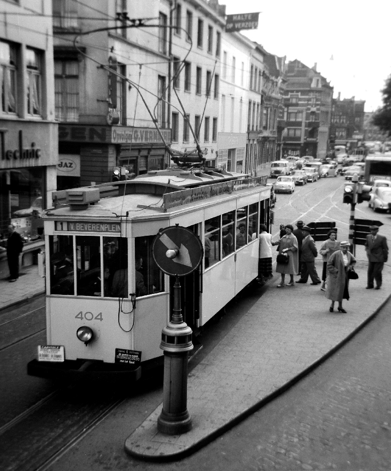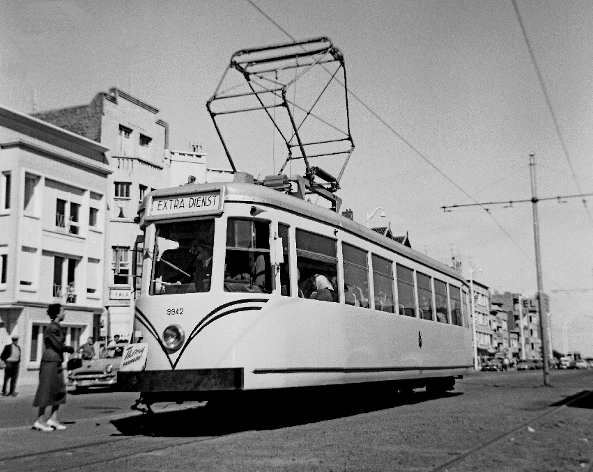 The old tram is in Ghent, the 'modern' one is on the 'Vicinal' Coastal Tramway in Blankenberge, and probably an almost brand new piece of kit at the time.