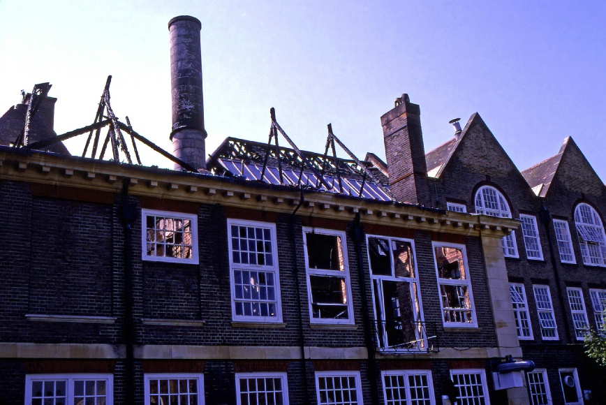 Colin recalls that the fire started in the old Caretaker’s flat on the top floor, where it is accessed from the corridor outside the Ealonian Room. The flat was undergoing renovations.o