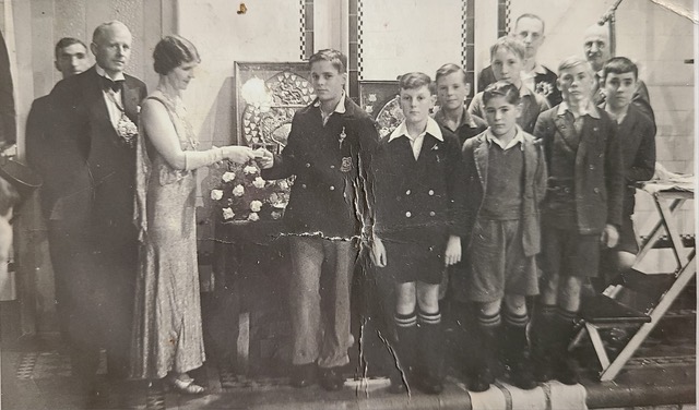 Her Father was an accomplished swimmer and diver at the Ealing Swimming Club, so it’s also possible this could be a blazer from there. The photo shows him being awarded a medal by the then Mayor and Mayoress.